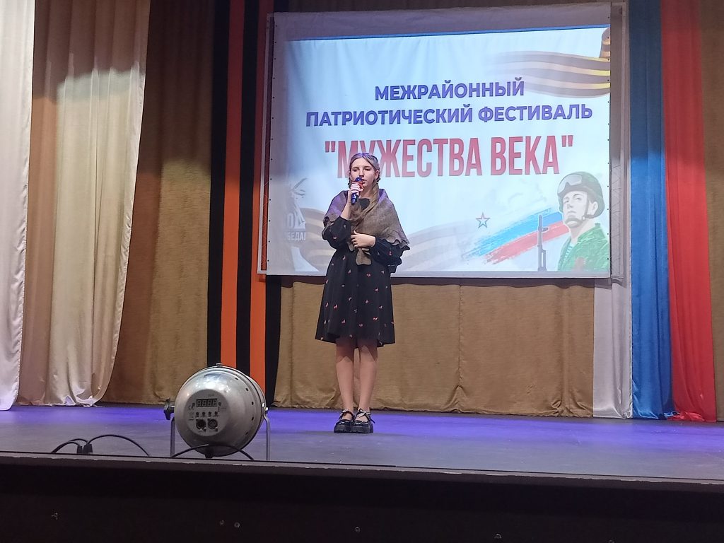 Завершающим моментом проекта стал яркий и незабываемый межрайонный патриотический фестиваль «Мужества века», с участием творческих коллективов Табунского района и гостей из города Славгорода и Ярового. Гаас Александрой было прочтено стихотворение Юлии Друниной «Зинка». Стихотворение рассказывает о потерях, горе и невозможности выразить боль от гибели близкого человека.