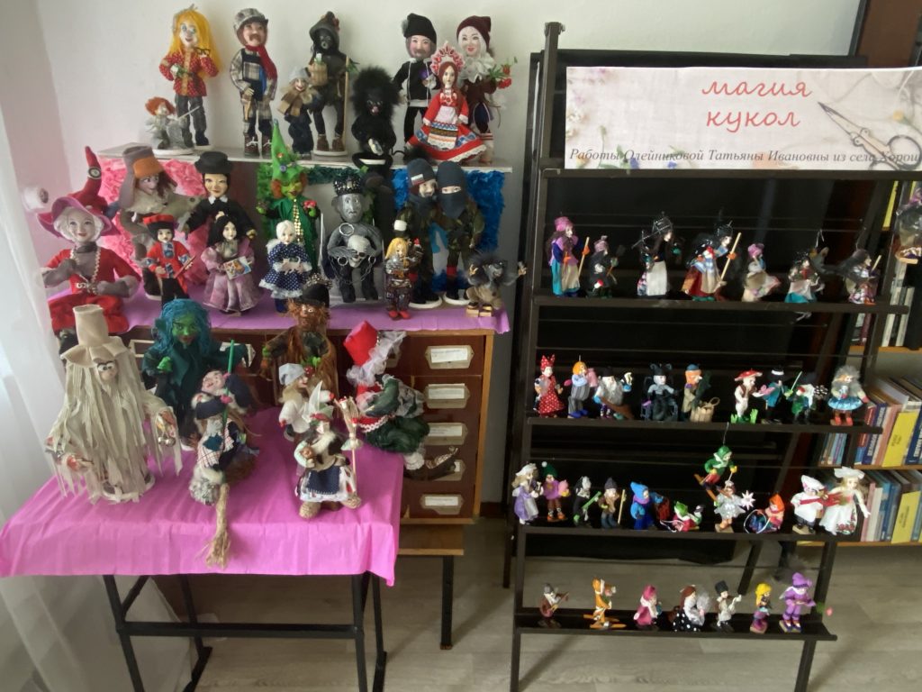 Варкентинова Евгения Петровна, заведующая читальным залом, рассказала о выставке Т.И. Олейниковой «Магия кукол». В экспозиции были представлены уникальные куклы ручной работы, изготовленные из ваты и текстиля.