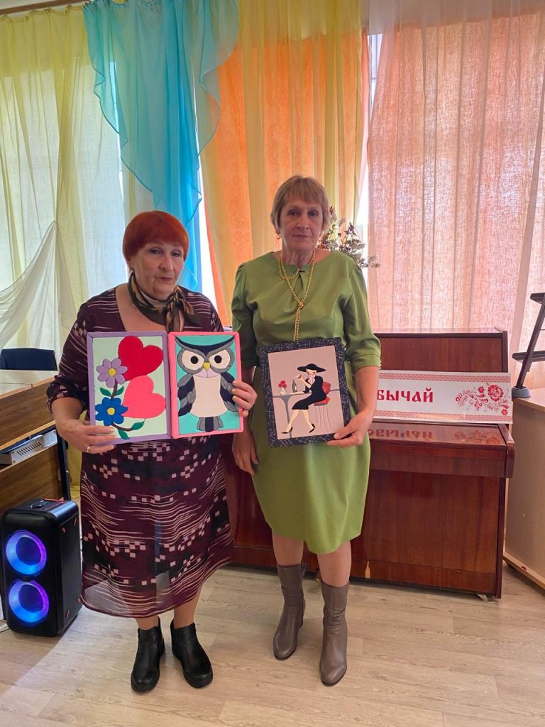 Гости мероприятия подарили библиотеке несколько картин, созданных своими руками.