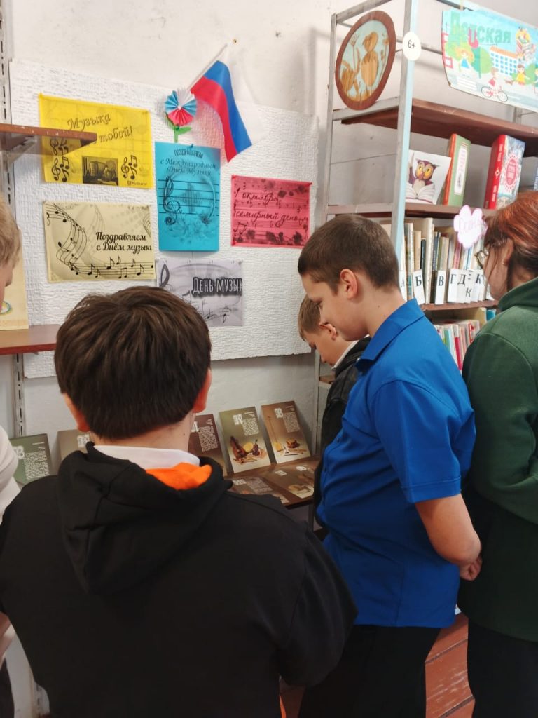 К мероприятию была оформлена книжная выставка «Звуки музыки», где представлены детские книги, рассказывающие о жизни и творчестве великих композиторов, а также сказки, которые помогут ребятам лучше понять мир звуков, которые нас окружают.