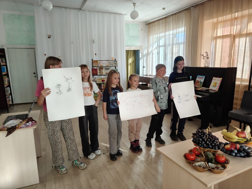 Результаты получились забавными и оригинальными, вызвав дружный смех и аплодисменты. А после художественного эксперимента все с удовольствием подкрепились, угостившись сочными фруктами и овощами с того самого «натюрморта».