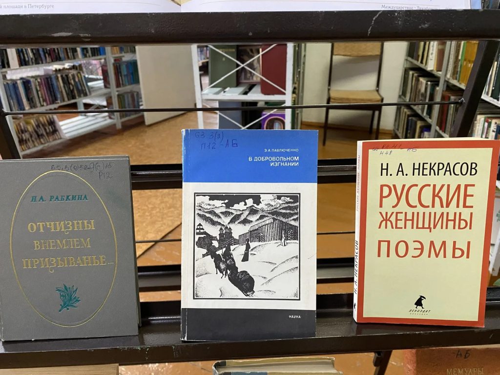 Отдельный раздел выставки посвящен сестрам и женам декабристов, которые разделили с ними нелегкую участь, последовав за своими мужьями в ссылку в Сибирь. Эти издания рассказывают о стойкости и преданности этих женщин, ставших символом женского подвига в истории России.