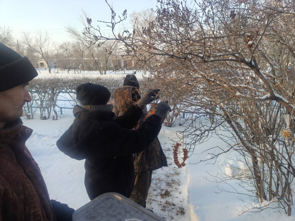В конце мероприятия мы вместе развесили готовые кормушки на территории библиотеки, насыпали в них свежий корм и договорились регулярно пополнять запасы еды и наблюдать за посетителями кормушек.