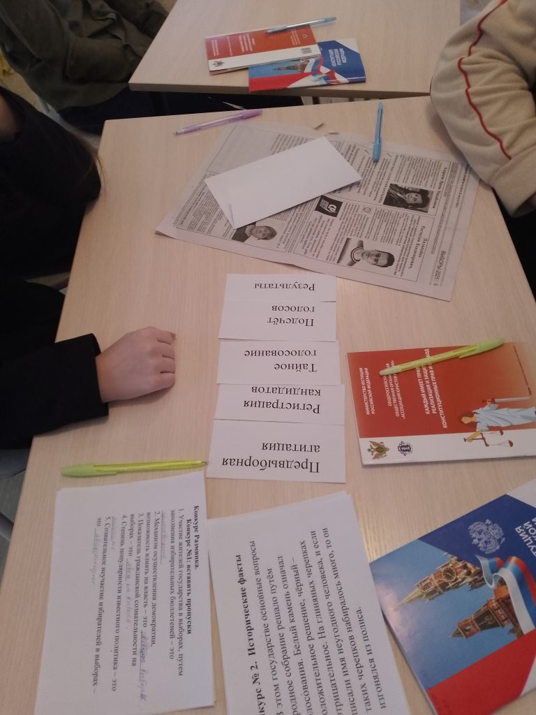 Для учеников 9 класса библиотекарь провела информационный час с конкурсами и викториной, которые показали на сколько ребята ориентируются в правовом и избирательном пространстве.